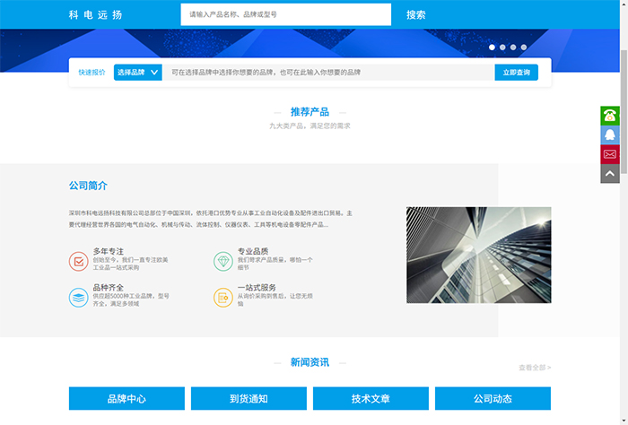 科電遠(yuǎn)揚(yáng)新的主網(wǎng)站秉承了簡約、清新的風(fēng)格,視覺效果極好,可以瞬間給訪問者留下非常深刻的印象。網(wǎng)站功能應(yīng)用則極其強(qiáng)大,有很好的邏輯架構(gòu),方便客戶節(jié)省寶貴時間快速搜索到最為關(guān)心的信息,精確找到自己的需求。另外,網(wǎng)站的布局和結(jié)構(gòu)也非常合理,盡管數(shù)據(jù)龐大,但絲毫不會影響到網(wǎng)站的訪問速度。因此,整合了眾多現(xiàn)代化元素和技術(shù)手段的新網(wǎng)站基本代表了科電遠(yuǎn)揚(yáng)嶄新的形象和實(shí)力,也給廣大客戶帶來了非常好的訪問體驗(yàn)!另外新版本官網(wǎng)有好的美觀和用戶體驗(yàn),網(wǎng)站有電腦端和移動端,站內(nèi)搜索功能也做得比較強(qiáng)大,讓每個頁面都可以快速搜索站內(nèi)資源,當(dāng)然新網(wǎng)站的內(nèi)容還在緊張陸續(xù)更新中,盡請期待!